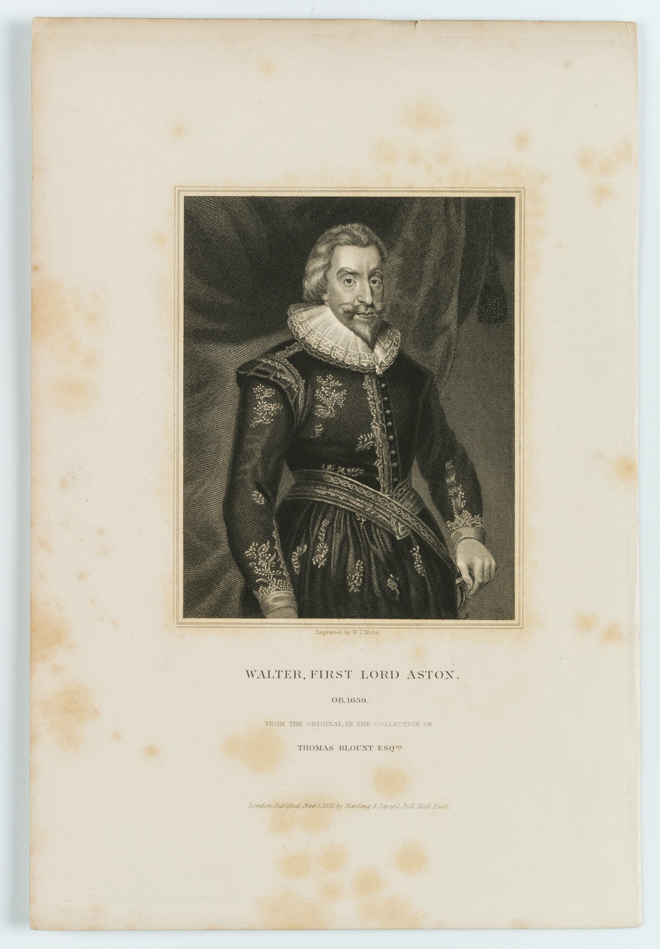 - Bezeichnung: Unten signiert und betitelt: “Walter, First Lord Aston. OB. 1639. From the original. in the collection of Thomas Blount Esqre.”