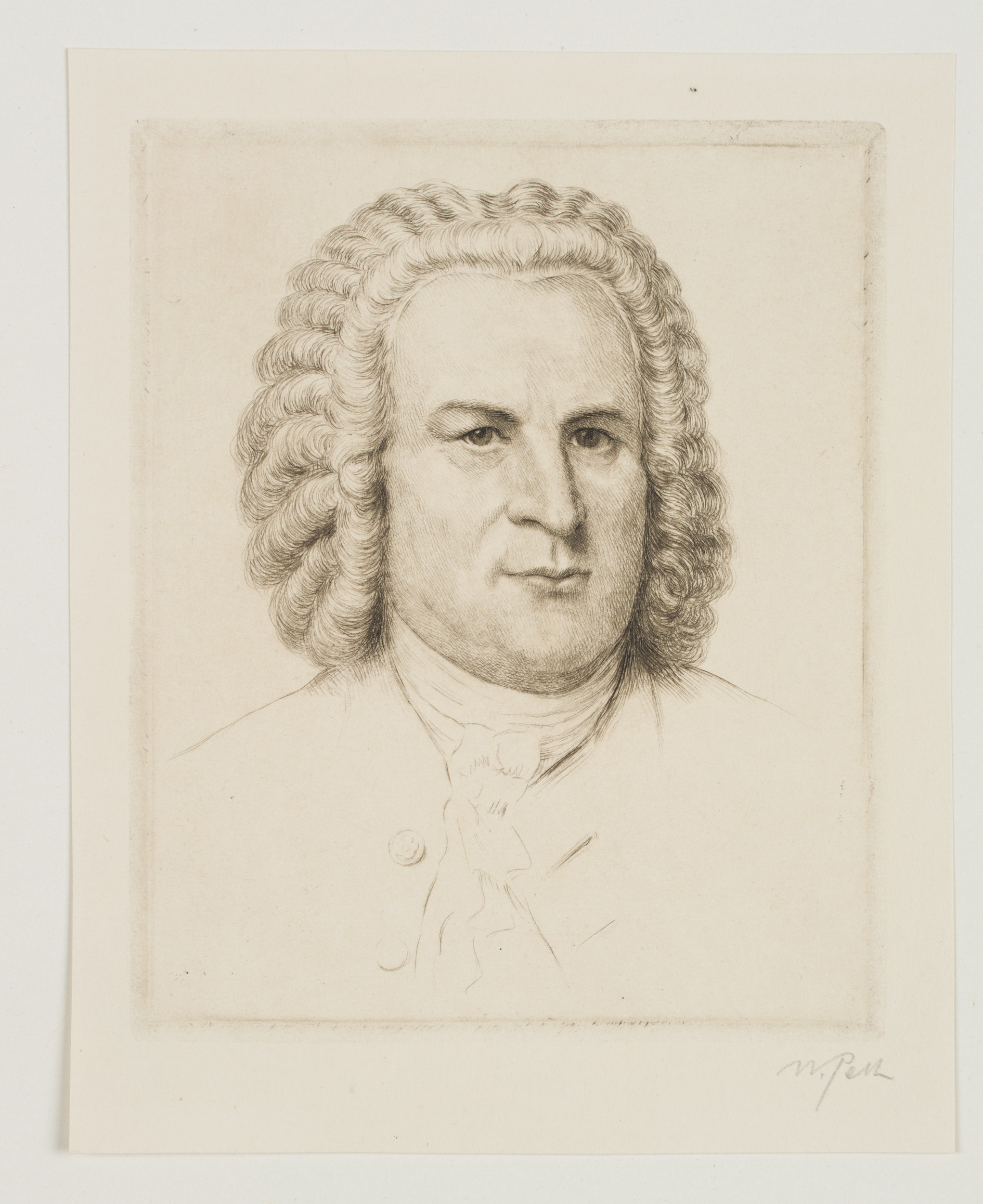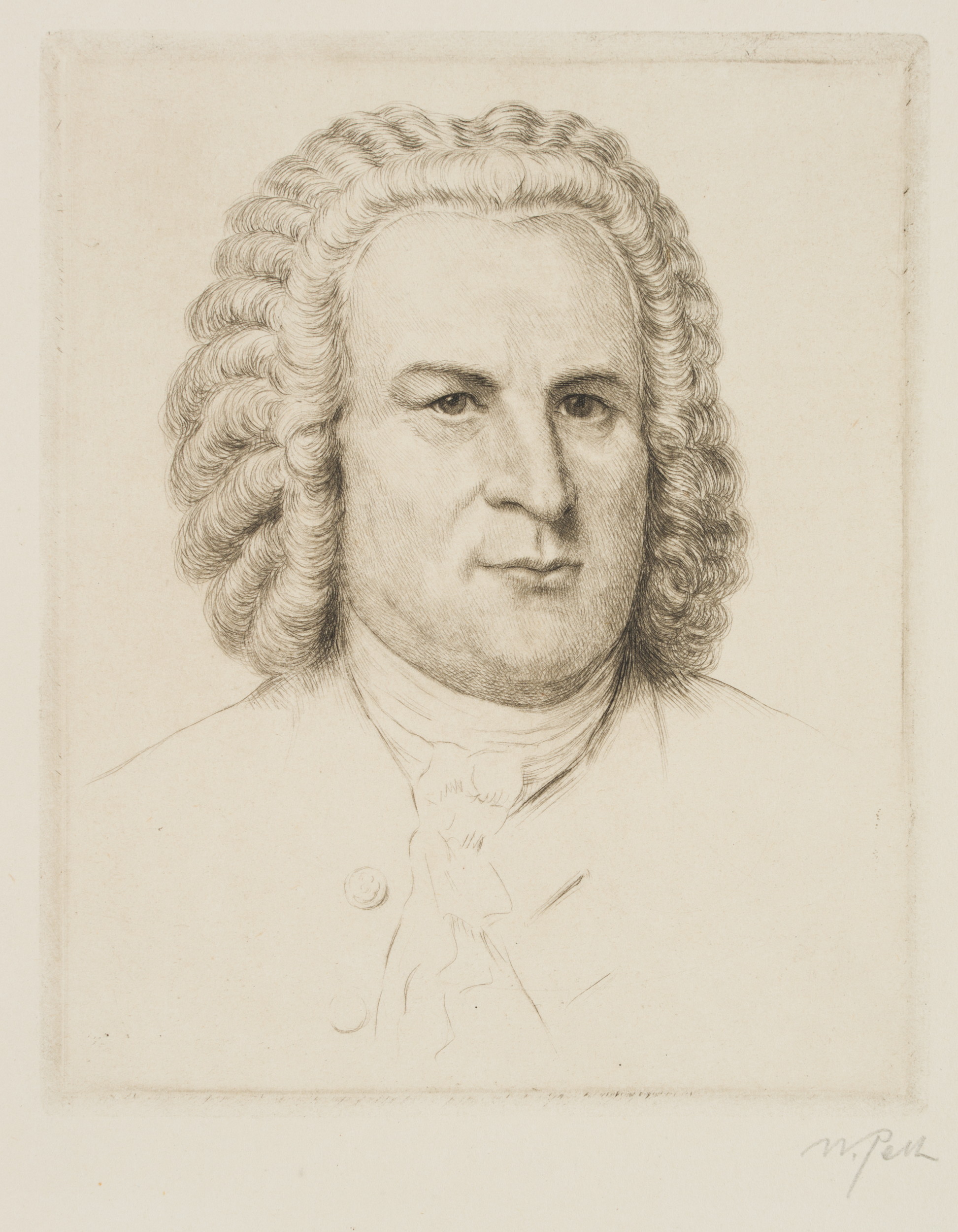 Waldemar Pech (*1911 ), Porträt von Johann Sebastian Bach, , Kaltnadelradierung
