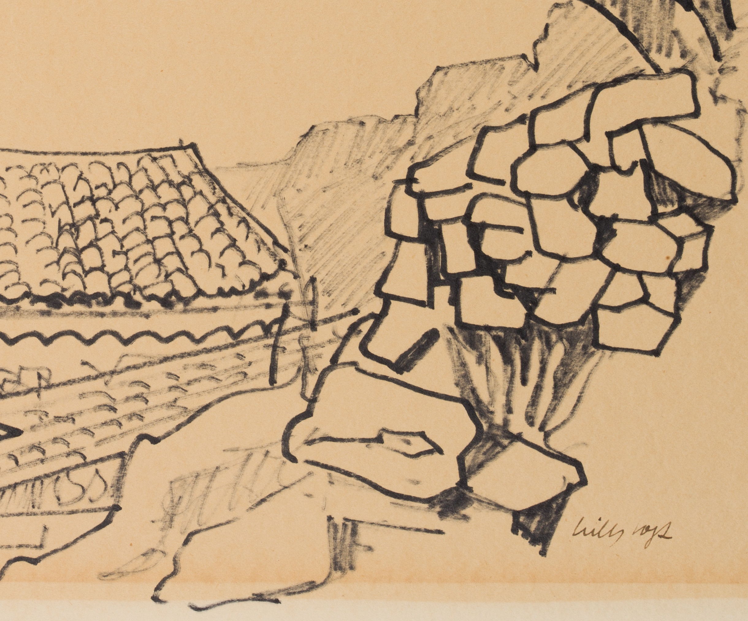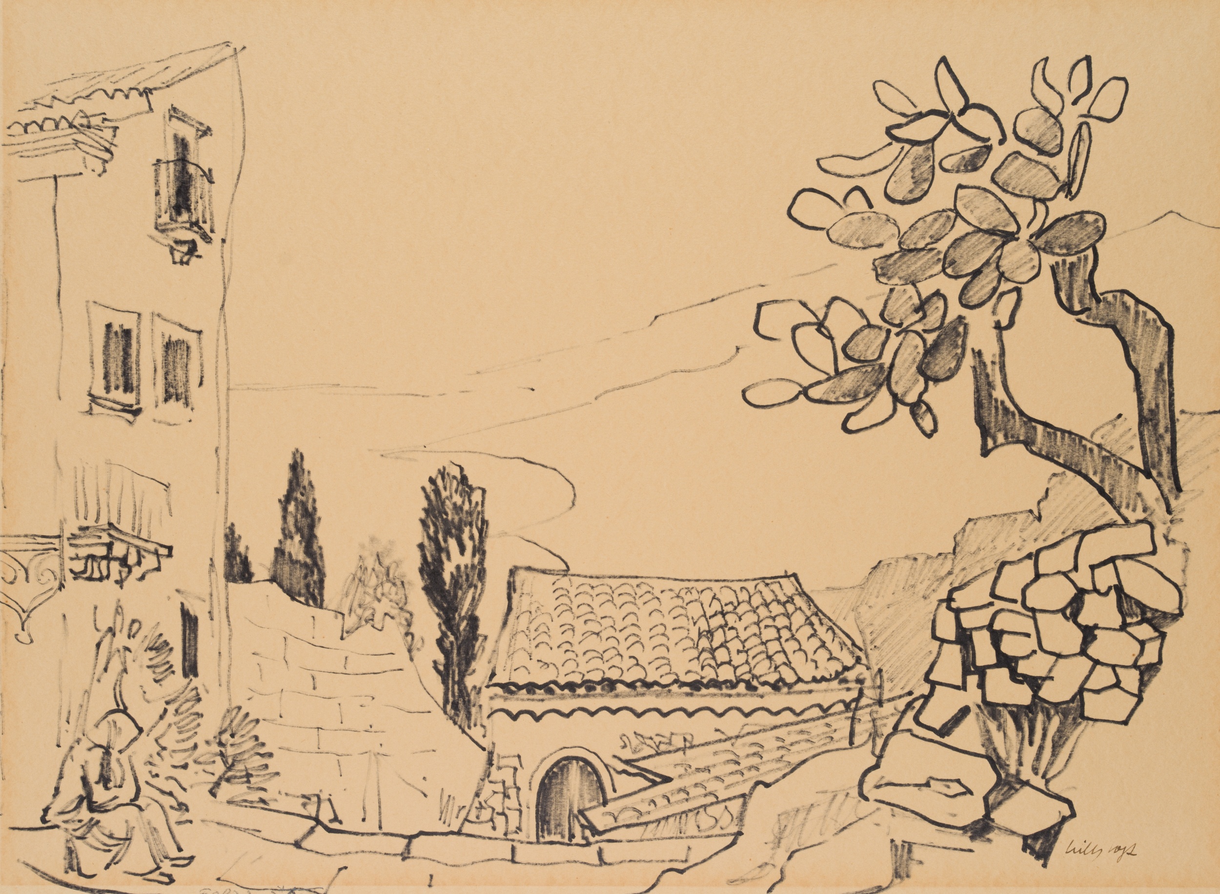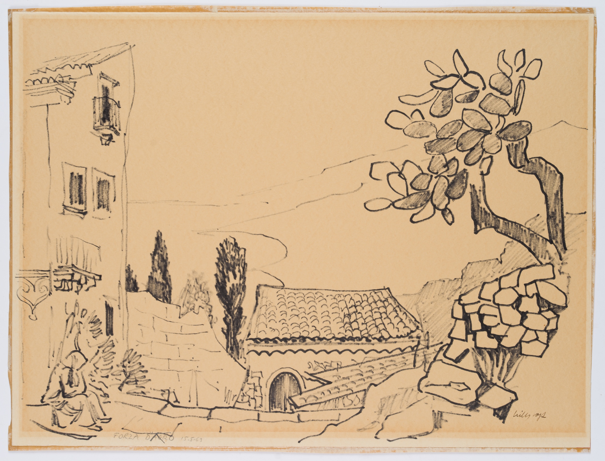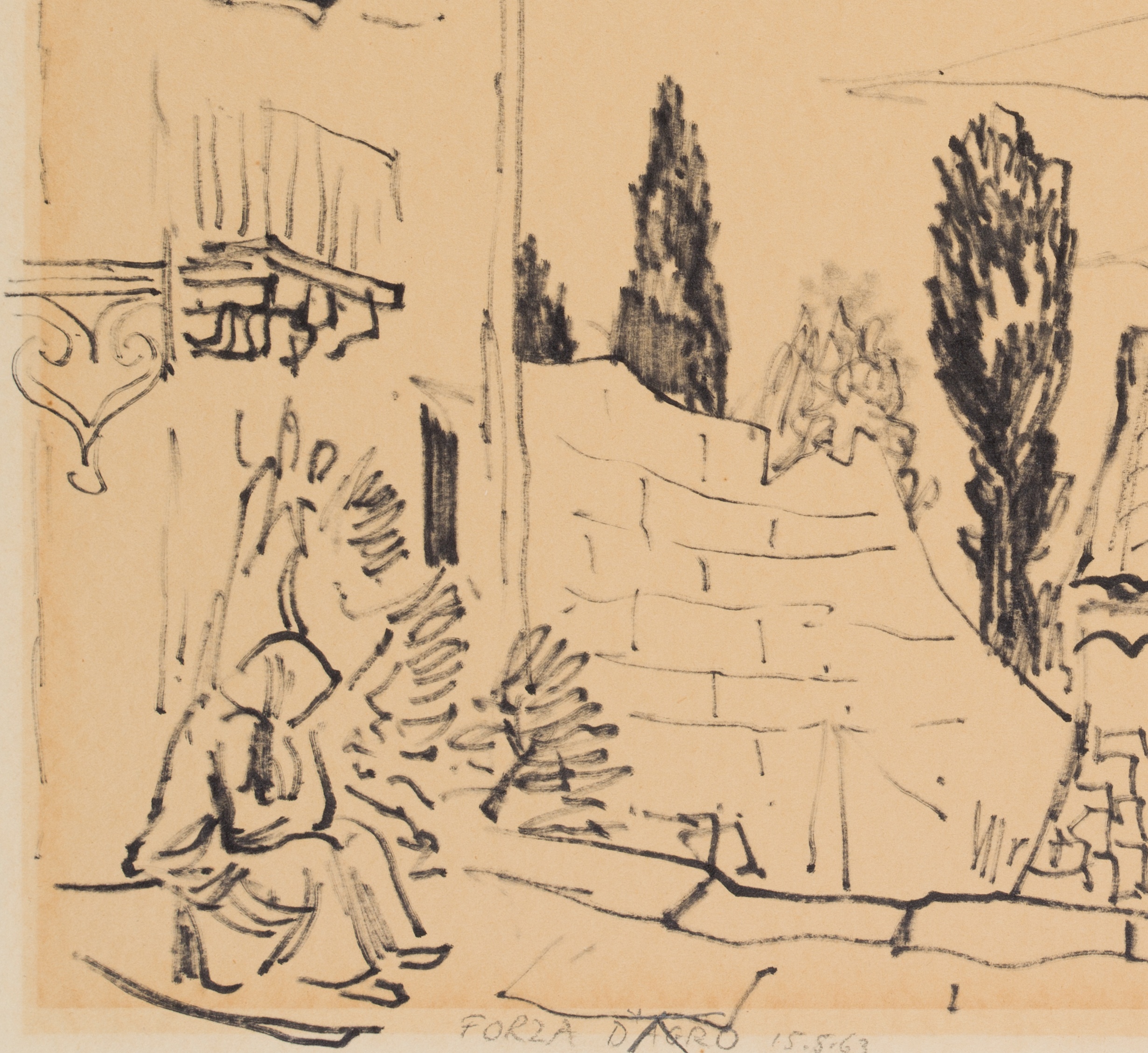 Willy Vogt (born 1907 Stuttgart), Village view of Forza d’Agrò, Sicily, 1963, Felt-tip pen