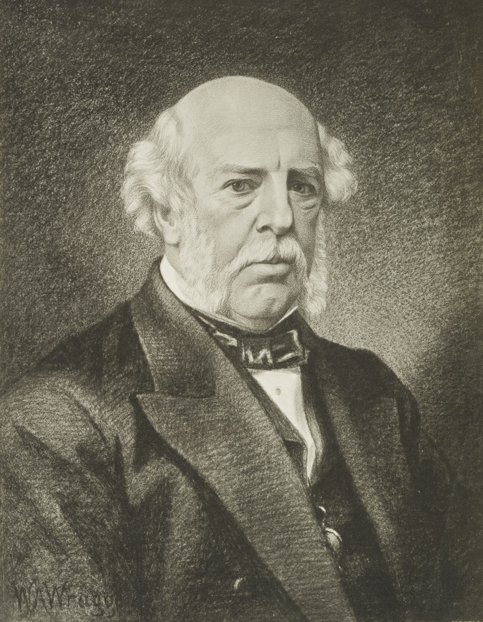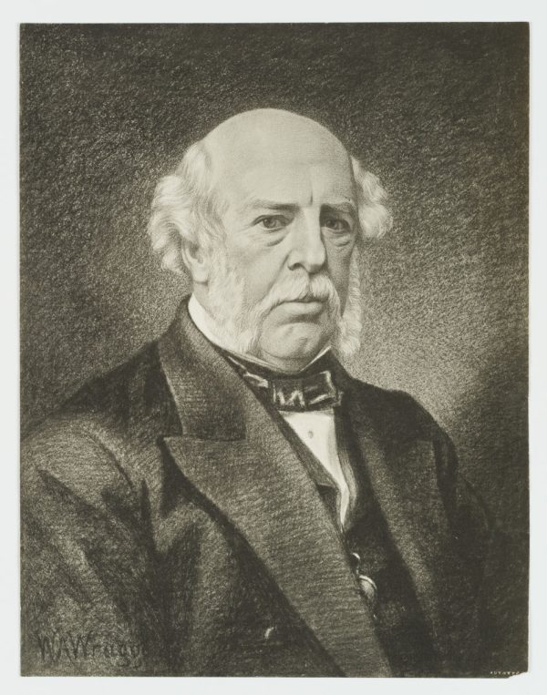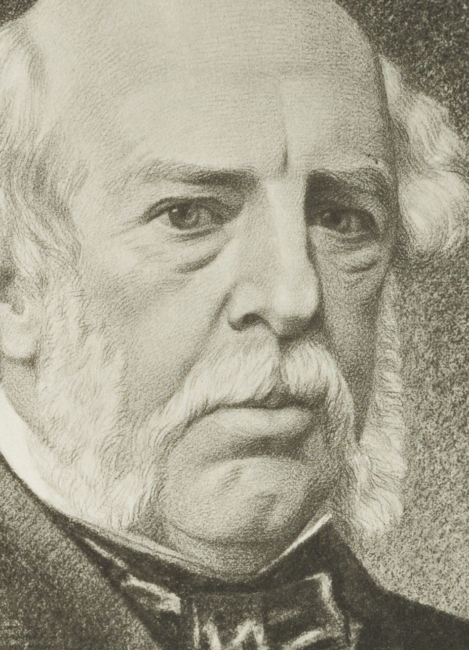 W.A. Wrugge (19. Jahrhundert), Porträt eines würdevollen Herren mit Backenbart, 19. Jahrhundert, Lithographie