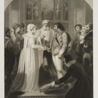 - Beschreibung: Blatt von hervorragender Druckqualität. Unter der Darstellung signiert, datiert und bezeichnet: “R. Westall R.A. Del. / Pub.d by R. Bowyer. Historic Gallery. Pall Mall Sept. 1806 / R. M. Meadows sculp.t”. Darunter mittig typographisch betitelt: “Marriage”. Hochzeitszeremonie, die am Altar, Anfang des 19. Jahrhunderts, stattfindet. Nach R. Westall, aus: ‘Westall’s Illustrations of the Book of Common Prayer.’