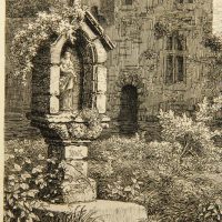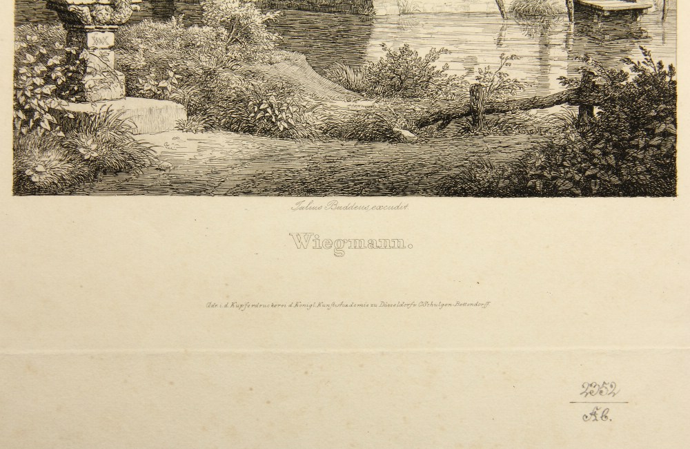 Rudolf Wiegmann (1804 Adensen – 1865 Düsseldorf) after Julius Buddeus (1812 Bielefeld – 1873 Düsseldorf), Marian shrine and chapel by the river, 19th century, Etching