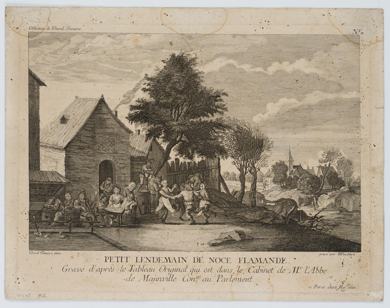 Benedikt Wincklers (18th century) after David Teniers jun. (1610 Antwerp – 1690 Brussels), Petit Lendemain de Noce Flamande, The Peasant Wedding, Dance, Flanders, 18th century, Etching