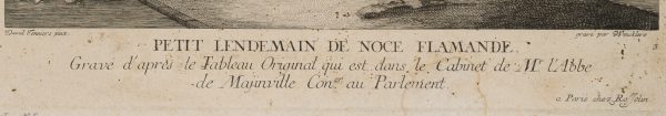 - Description: Unter der Darstellung signiert “David Tenniers pinx. / grave par Wincklers”, darunter bezeichnet “Gravé d’après le Tableau Original qui est dans le Cabinet de Mr. l’Abbé / de Majinville Con.er au Parlement. / a Paris chez Rosselin”.