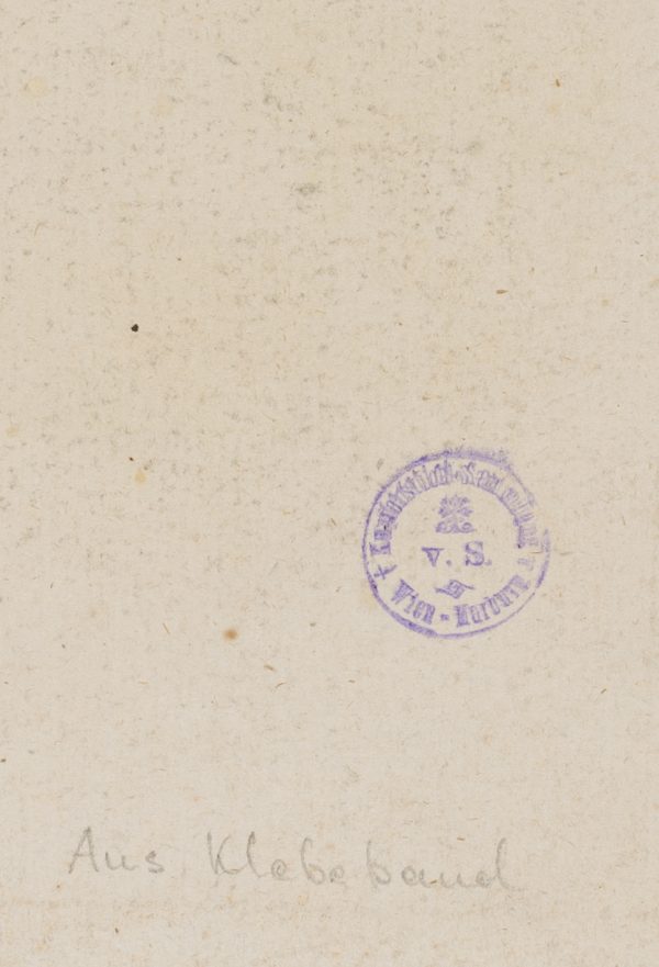 - Stamp: Collector’s stamp, Lugt no.: 4314. Unknown/not identified. Mark: “V. S. Kupferstichsammlung Wien-Marburg”. Vienna-Marburg. 20th century