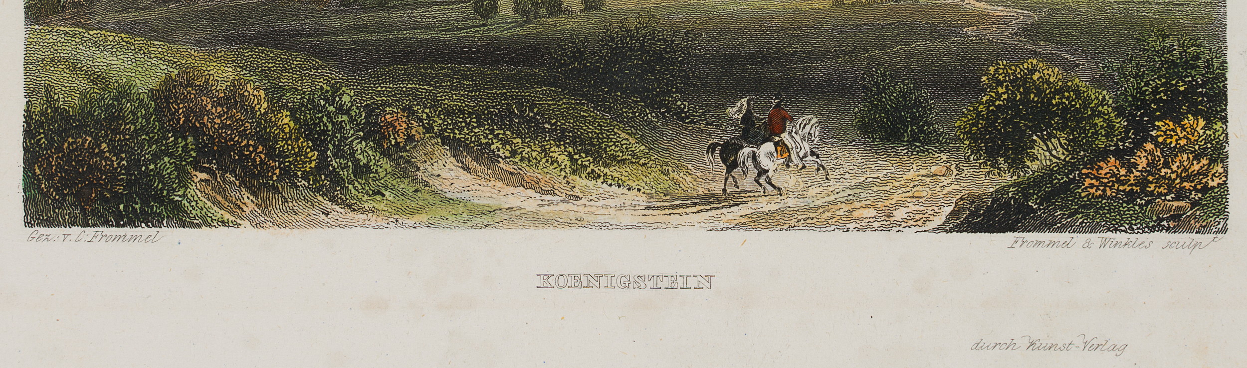 - Bezeichnung: Unten im Druck signiert: “Gez. v. C. Frommel | Frommel & Winkles sculpt”. Unten im Druck bezeichnet: “Koenigstein”.