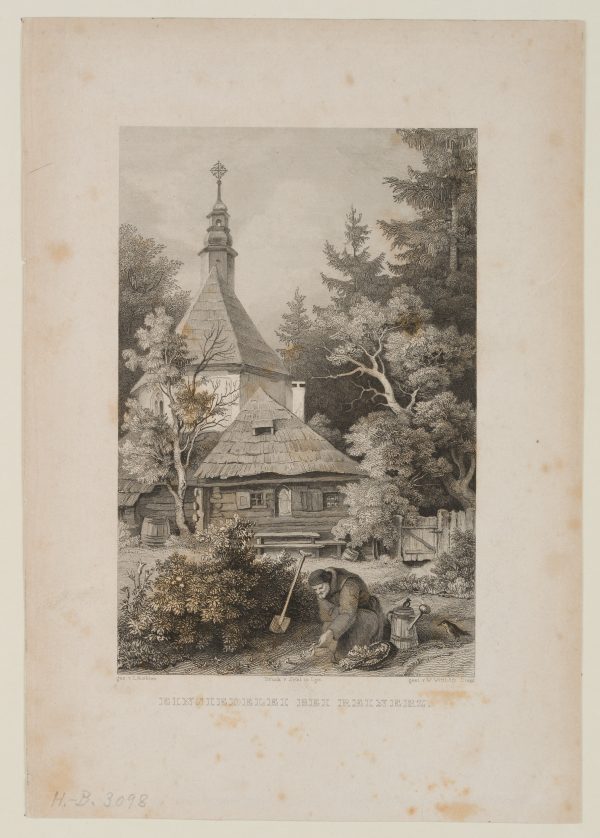 • Schlagworte: Wald, Kirche, Hütte, Einsamkeit, Eremit, Gartenarbeit, Gärtner, Natur, Natur, Deutschland, Romantik, 1800-1849