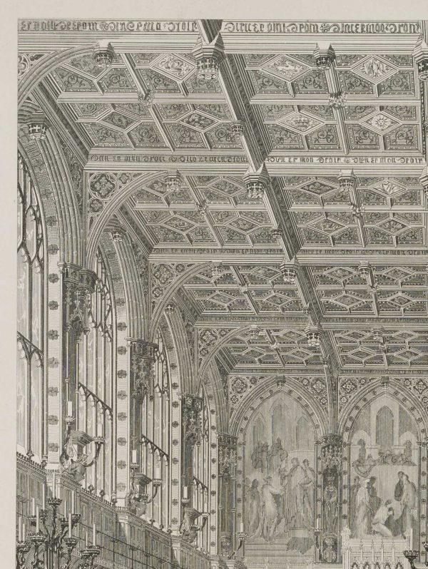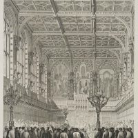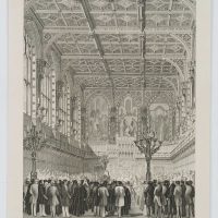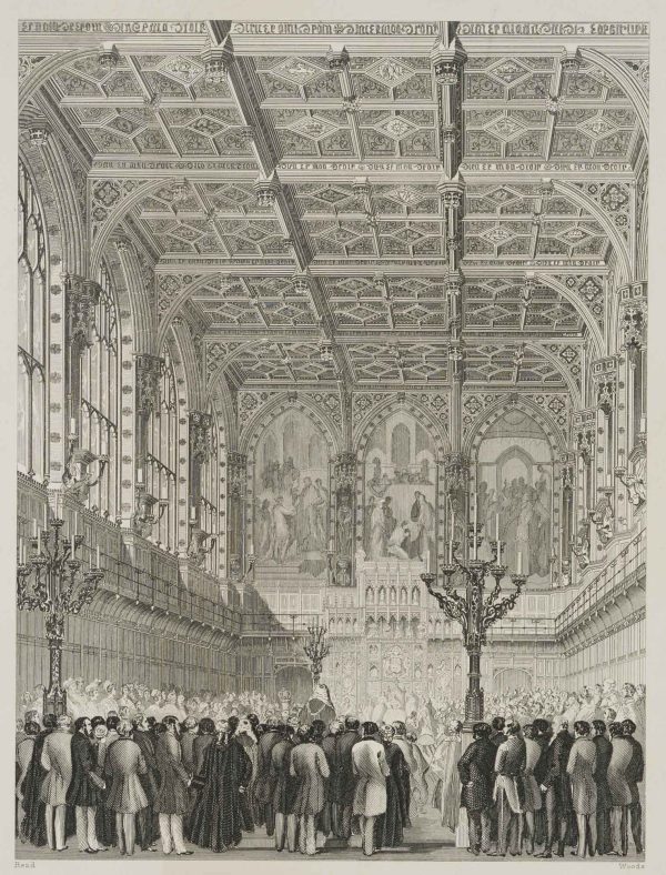 - Description: Steel engraving depicting the House of Lords meeting in a Gothic church.