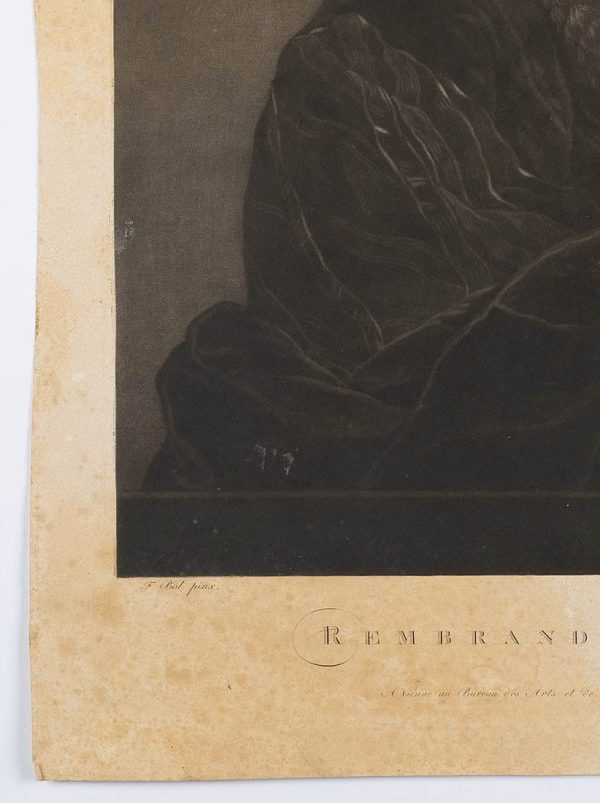 - Inscription: Signed, inscribed and dated below the image in the printing plate:: “F. Bol pinx. Wrenk sculps./REMBRANDT VAN RYN/A Vienne au Bureau des Arts et de l’Industrie. 1804”