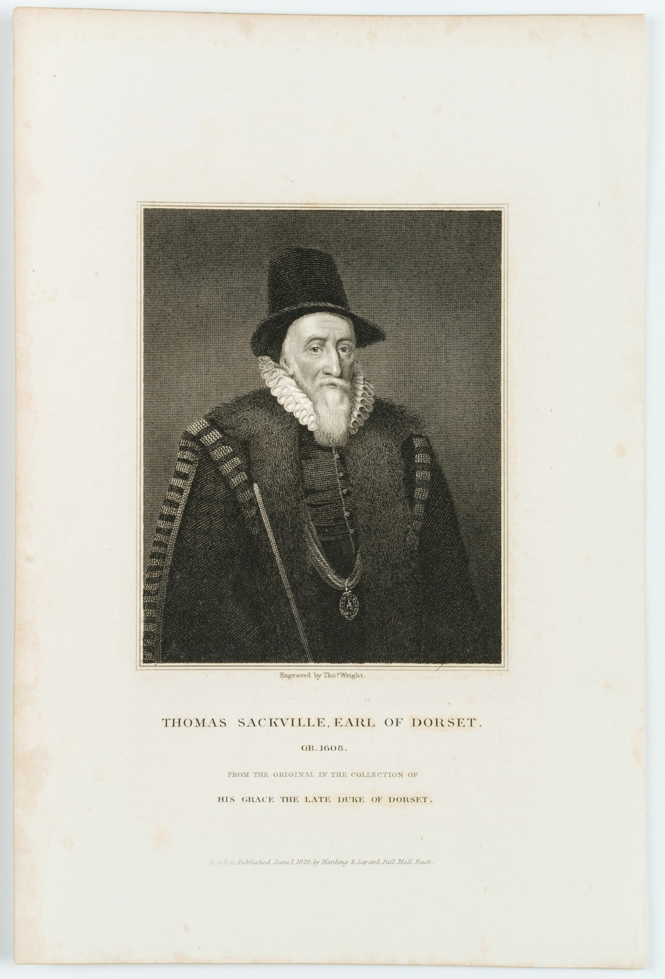 - Inscription: Unten signiert und betitelt: “Thomas Sackville, Earl of Dorset. OB. 1606. From the Original in the collection of His Grace The late Duke of Dorset.”