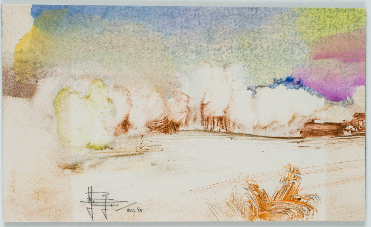 Yvan Royon (*1938 Brügge), Abstrakte Landschaft, 1985, Aquarell