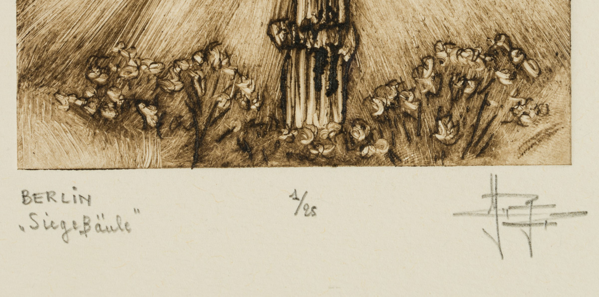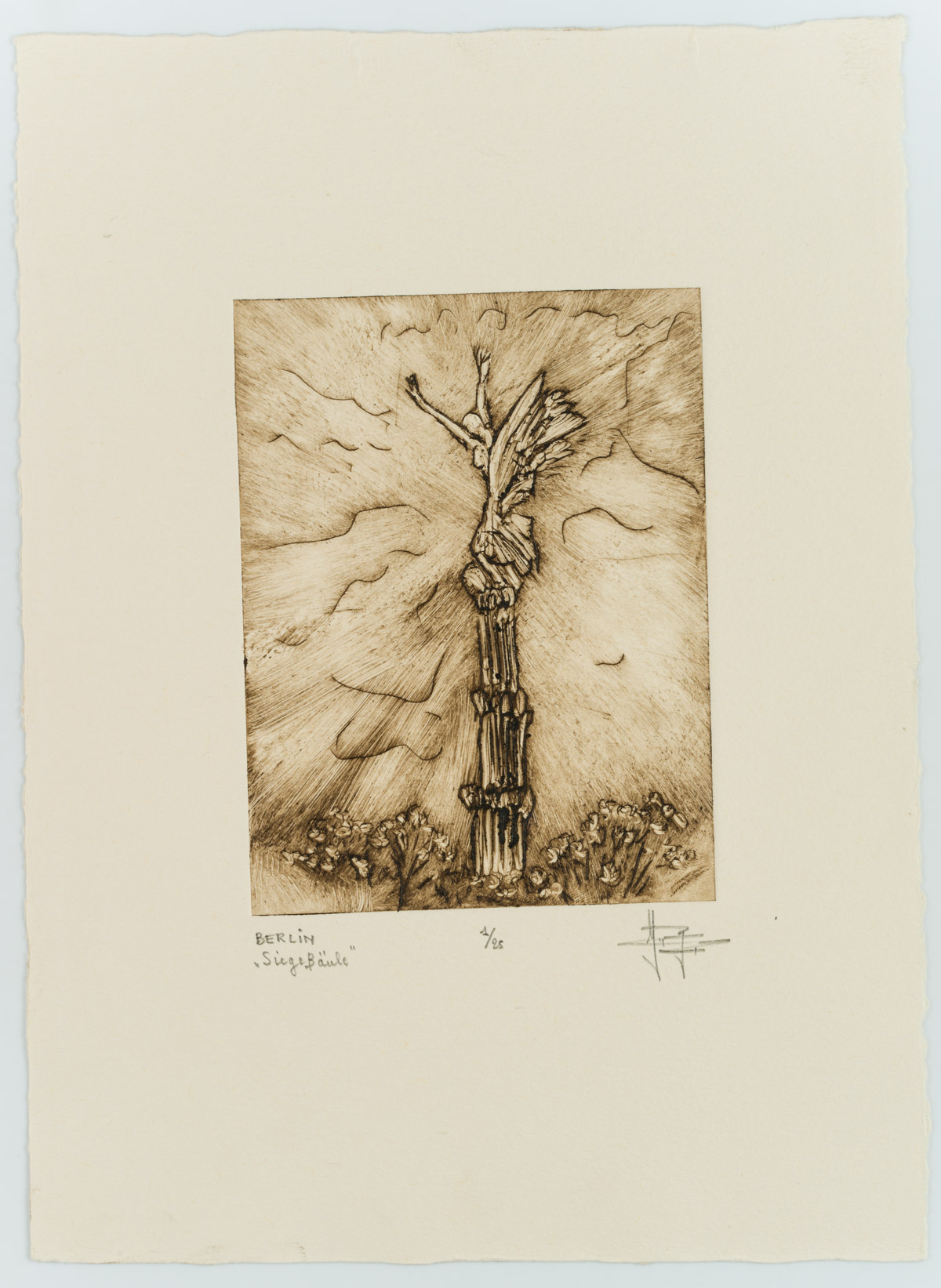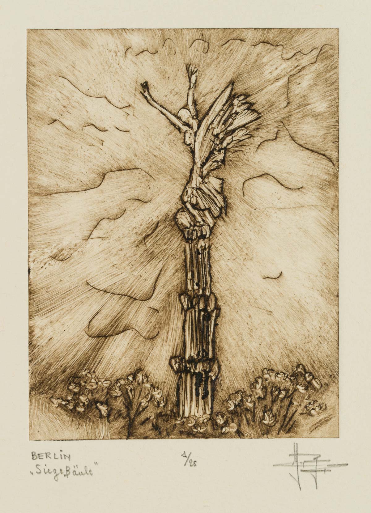 Yvan Royon (*1938 Brügge), Blick auf die Siegessäule, Berlin, , Radierung