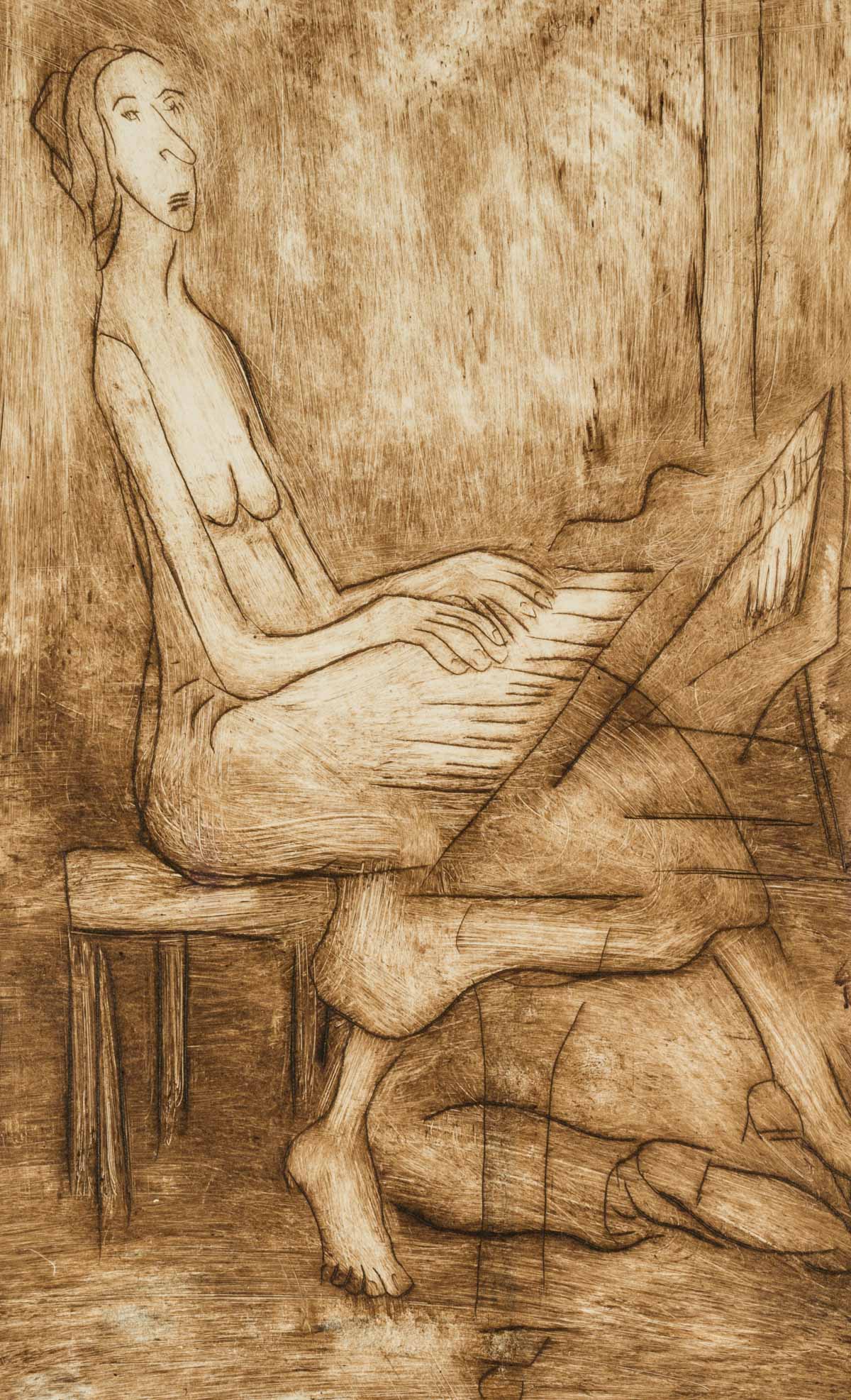 Yvan Royon (*1938 Brügge), Satirische Darstellung Pianistin, , Radierung