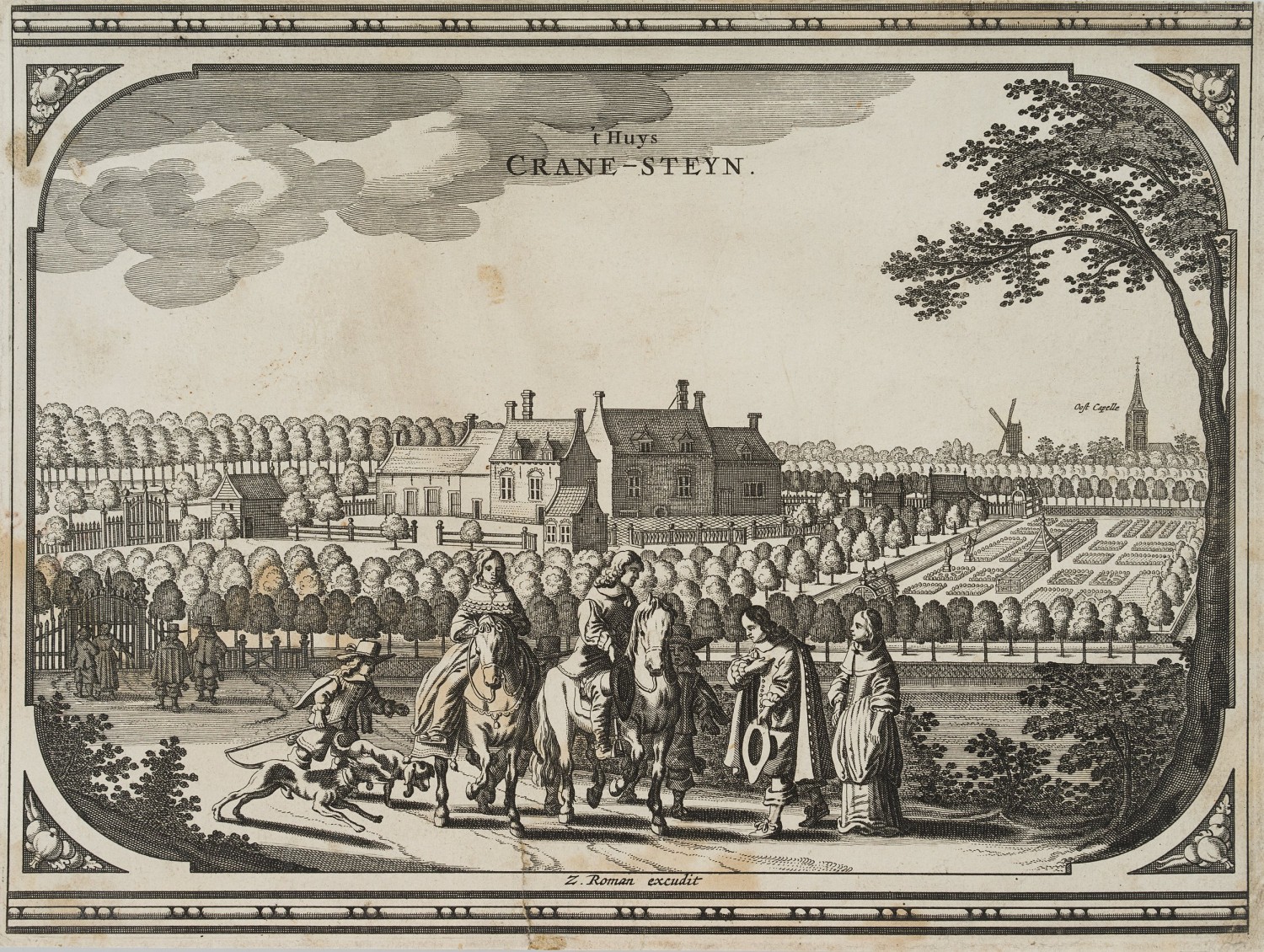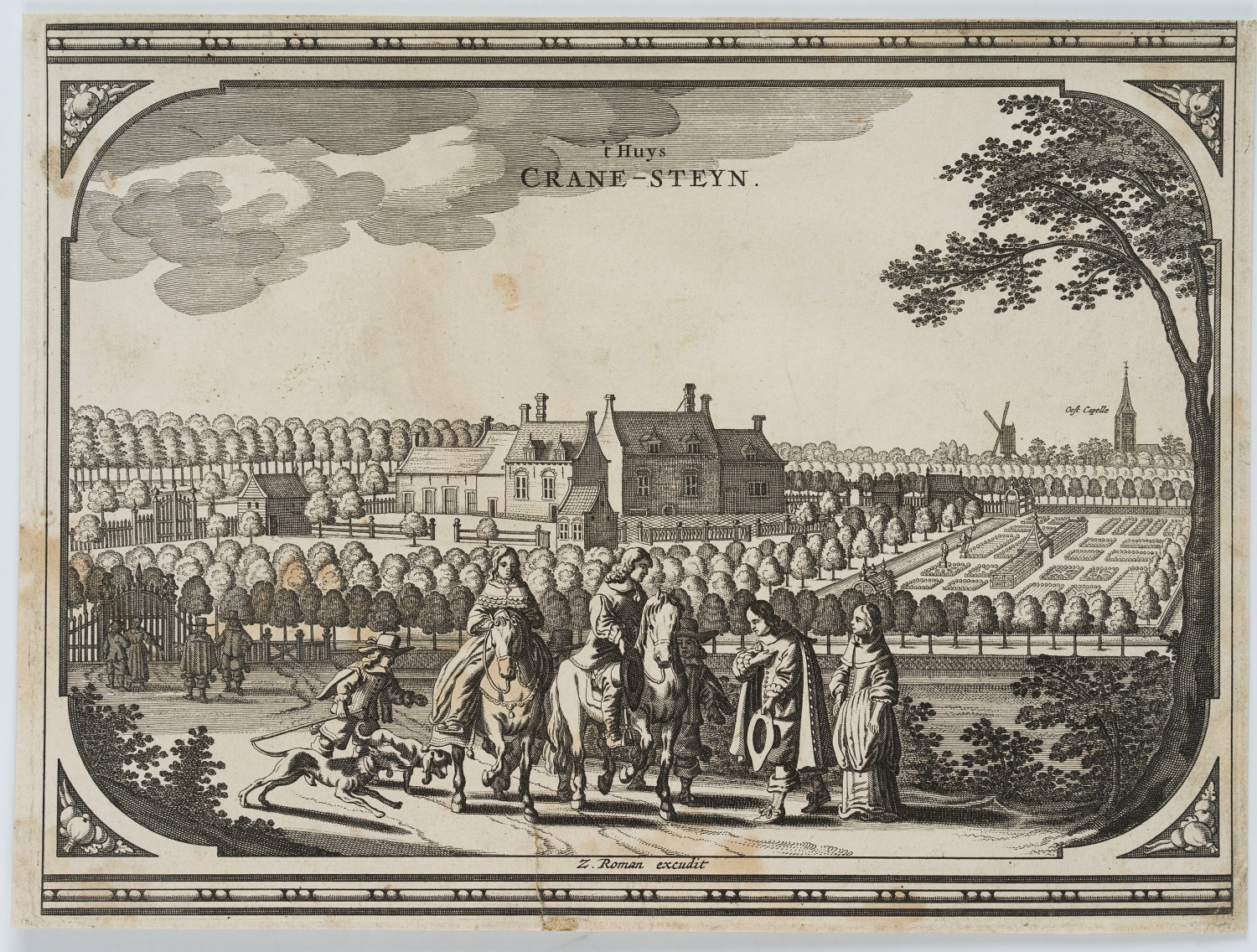 - Inscription: signed lower centre in the printing plate, titled in the image: “‘t Huys Crane-Steyn”.