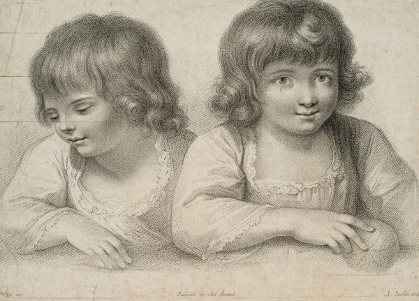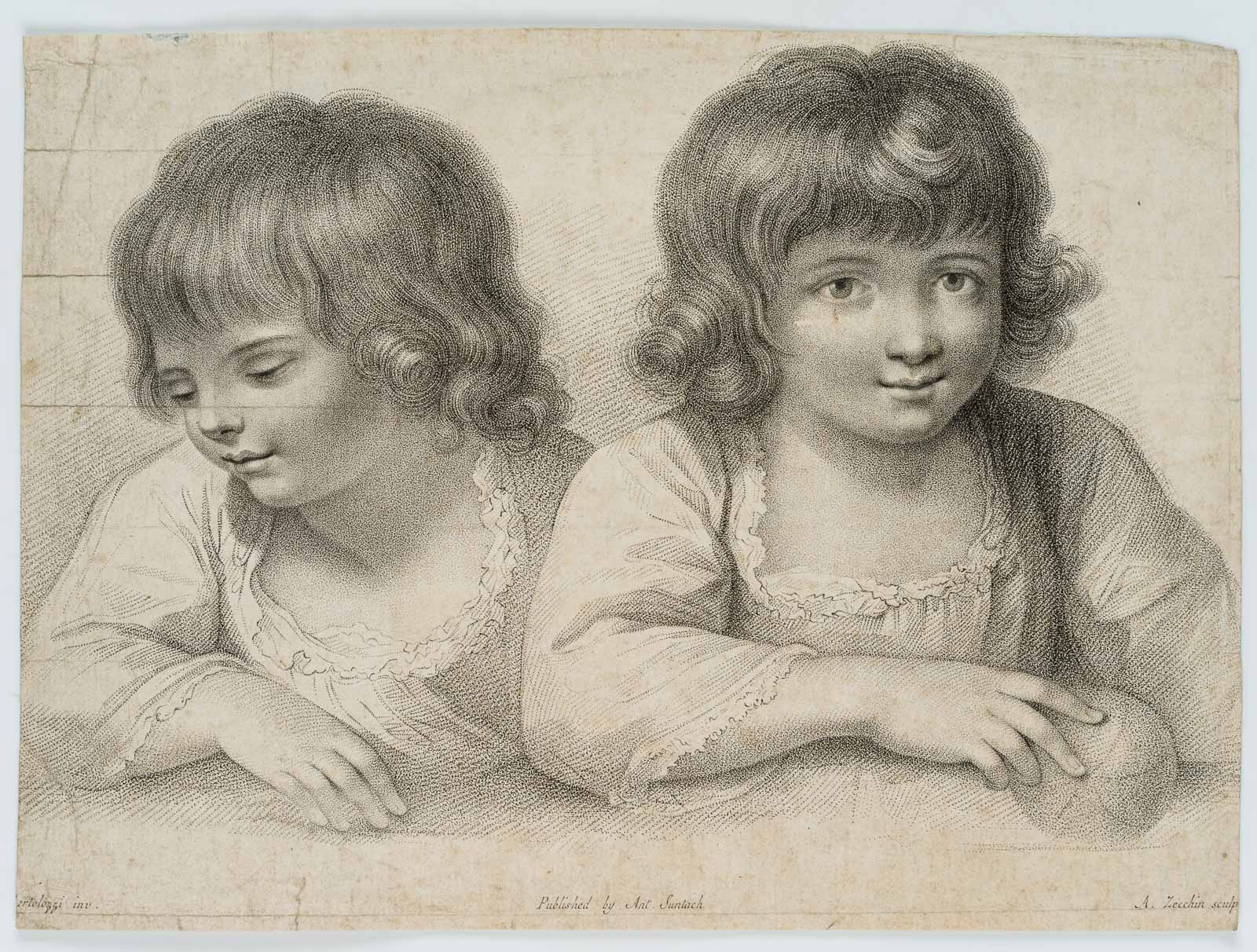 - Description: Very nice portrait of two little girls at a table, playing with a ball; the engraver Antonio Zecchin was active in Milan; after Bartolozzi; signed and inscribed below the image: “Published by Ant. Suntach”. | Watermark: GFA