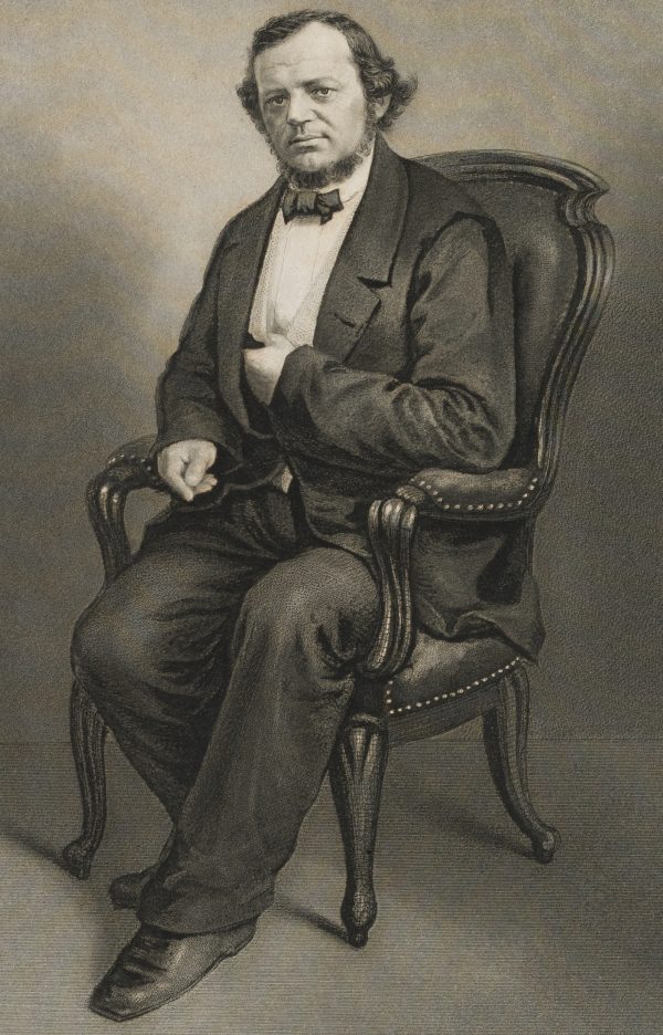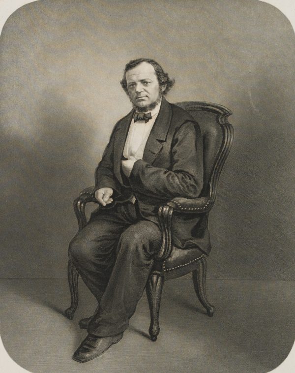 Heinrich Zollinger (1821 Pfäffikon – 1891 Riesbach) after Hieronimi (19th century), Portrait of Heinrich Bosshard, full-length figure sitting in an armchair, c. 1850, Steel engraving
