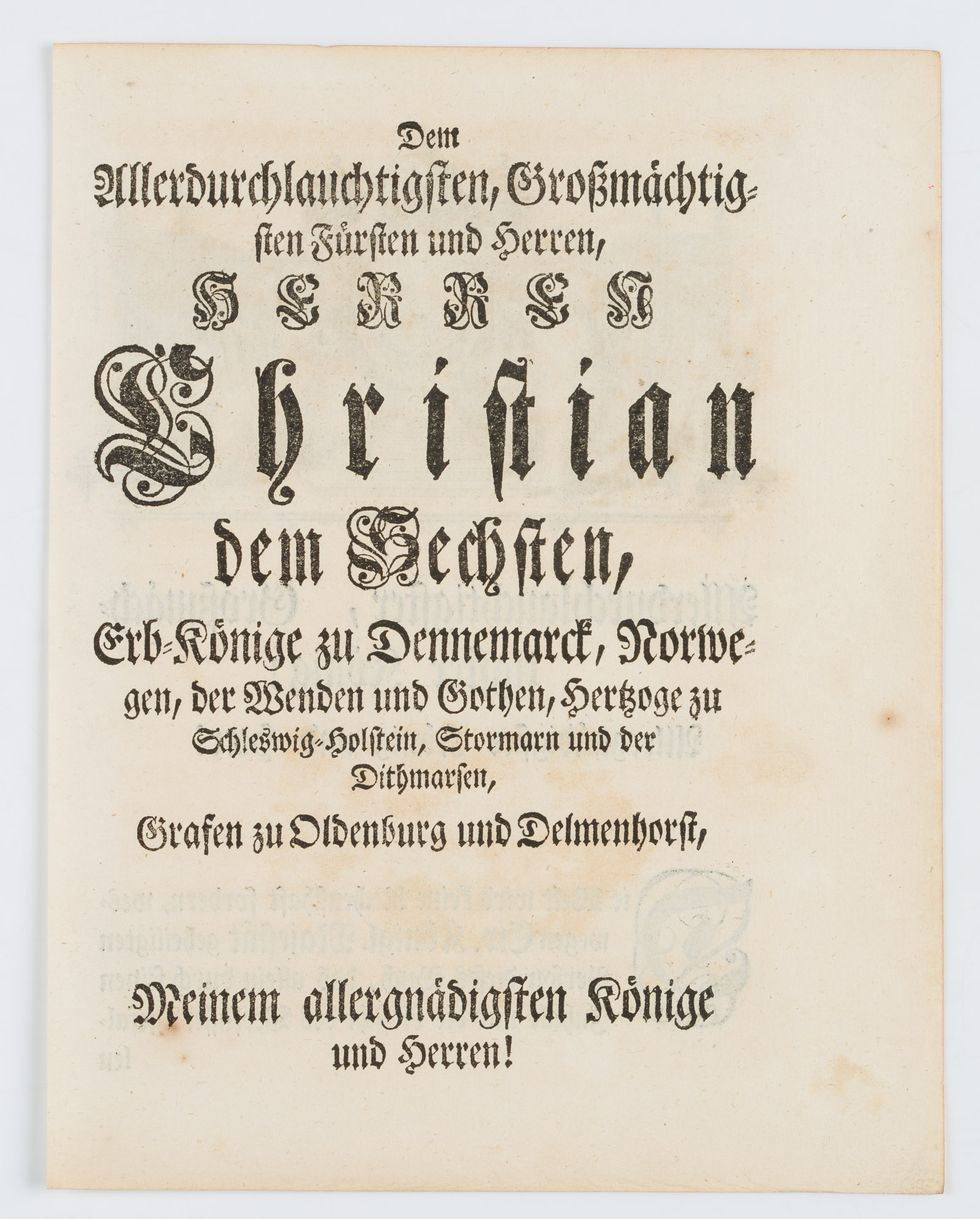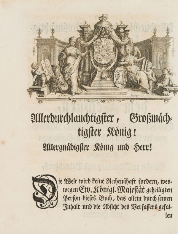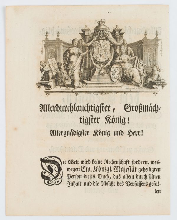 Zweiten Künstler prüfen: (), BERNIGEROTH; RICHTER, Widmung an Christian VI. mit Kupfervignette, 1738, 1738, Kupferstich