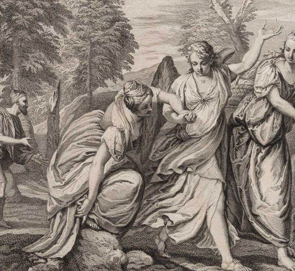 - Bezeichnung: Unterhalb in der Druckplatte betitelt: “Loth et ses filles sortant de Sodome[…]”. Aus der Serie Recueil d’estampes d’après les plus beaux tableaux et d’après les plus beaux desseins qui sont en France. Recueil Crozat. Cabinet Crozat.