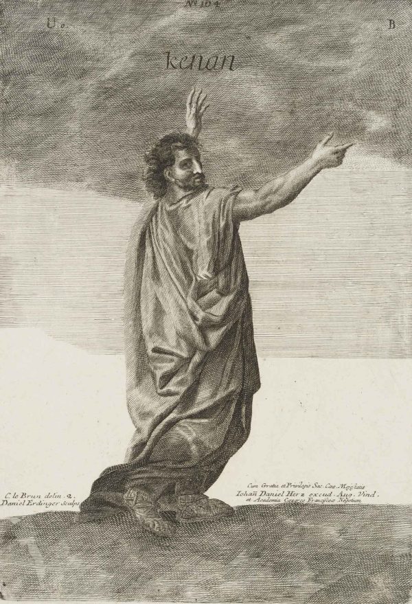 Zweiten Künstler prüfen: () nach Charles le Brun (1619 Paris – 1690 ebd.), LE BRUN; ERDINGER, Ganzfigurige Darstellung des Kenan, Bibel., Kpf, 18. Jahrhundert, Kupferstich