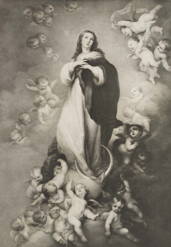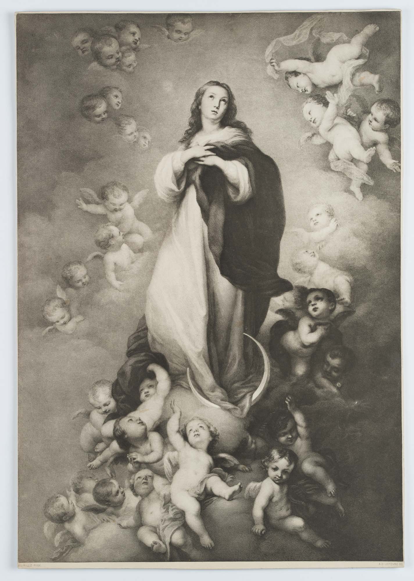 Zweiten Künstler prüfen: (), after LEFVRE after MURILLO, Crescent Moon Madonna with Angel Cloud, , Photogravure