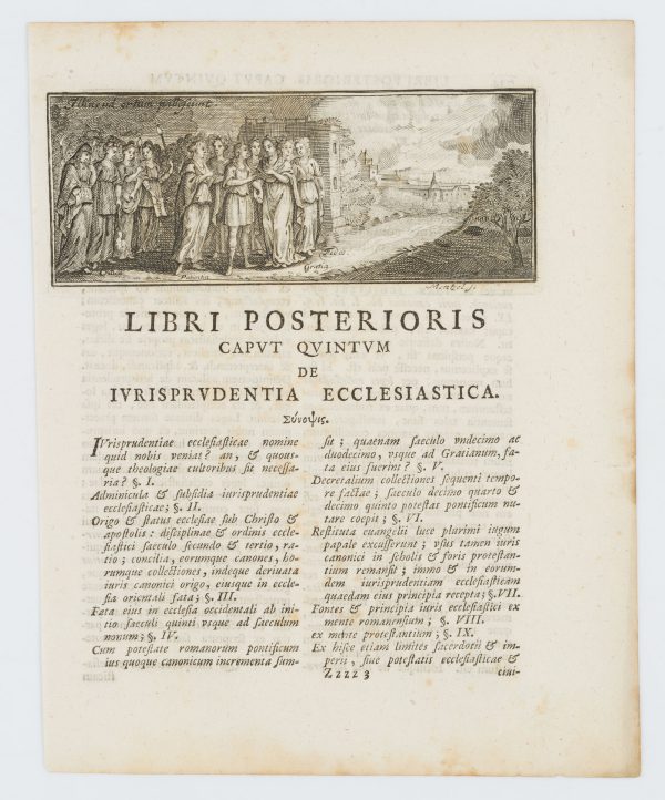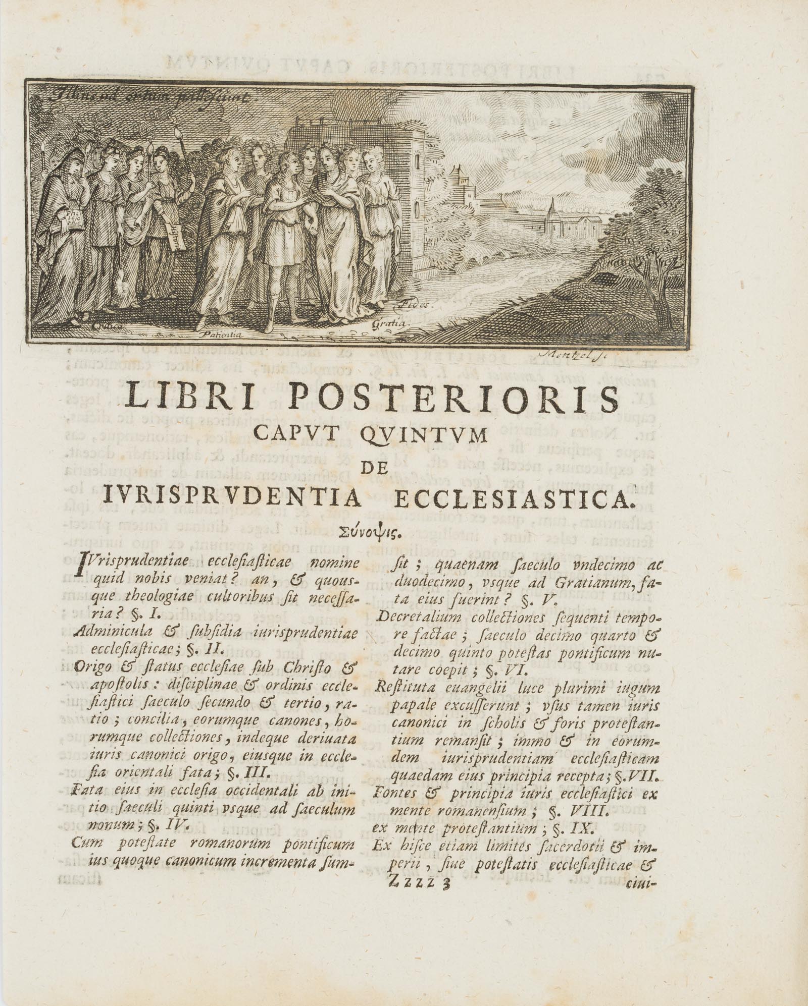 Zweiten Künstler prüfen: () after Unknown (18th century), Title page ‘Caput Quintum De Iurisprudentia Ecclesiastica’ with copper engraving, 1727, 1727, Copper engraving