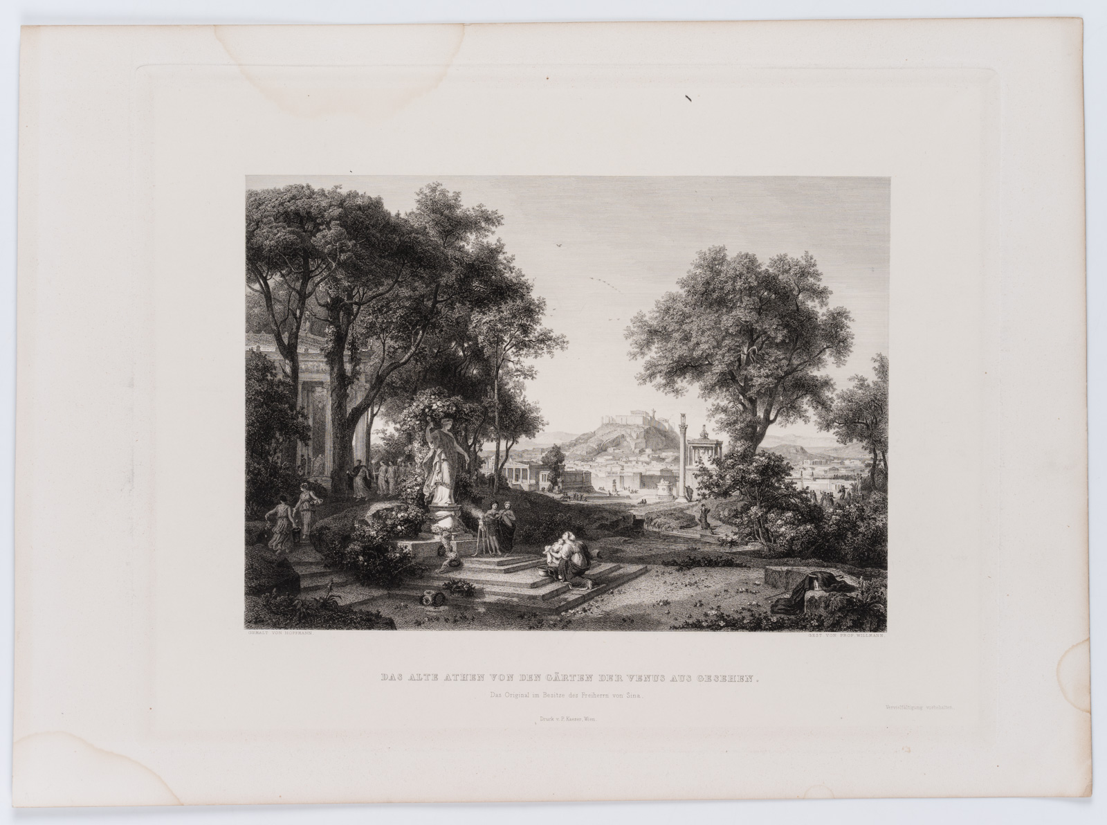 - Bezeichnung: Unterhalb in der Druckplatte signiert und betitelt. “Das Original im Besitze des Freiherrn von Sina”.