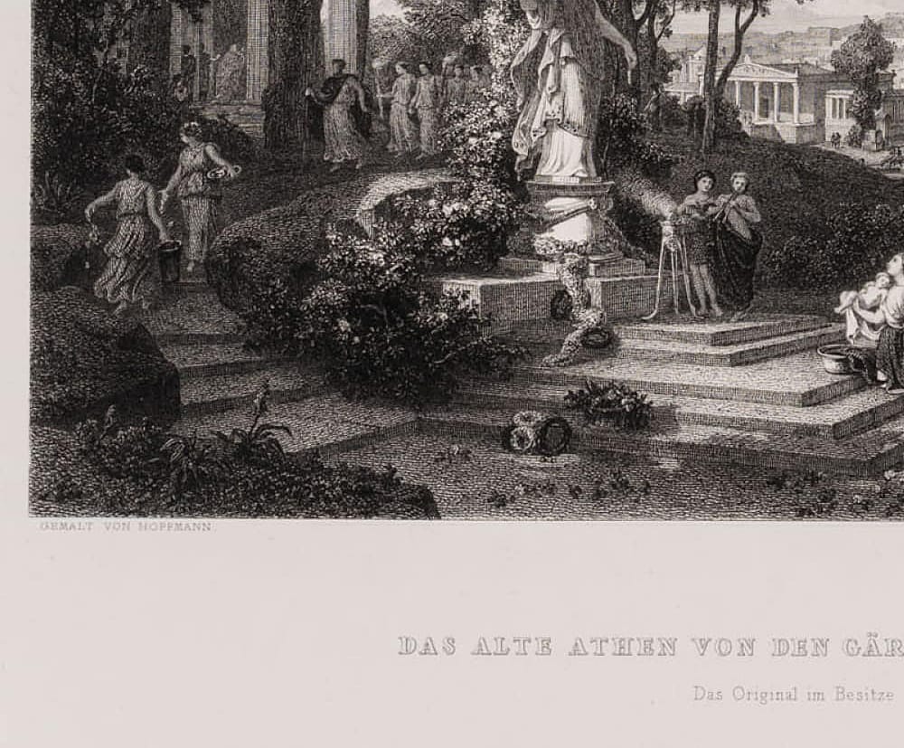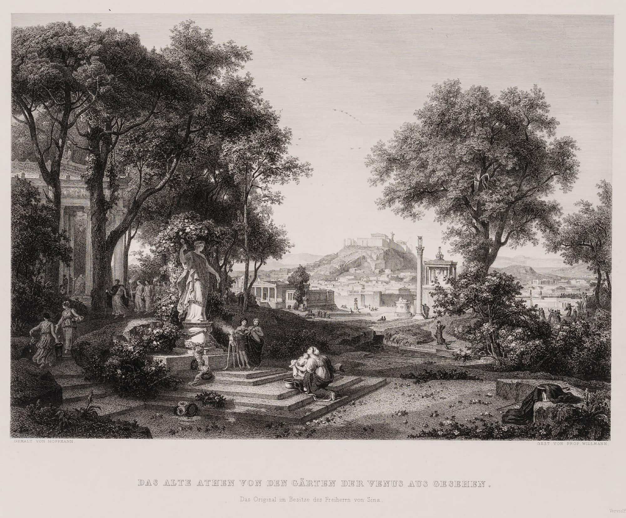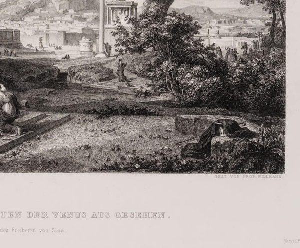 Zweiten Künstler prüfen: () after Eduard Willmann (1820 Karlsruhe – 1877 ibid.), EWILLMANN(*1820),Ancient Athens from the Gardens of Venus, Veduta, 19th century, Steel engraving