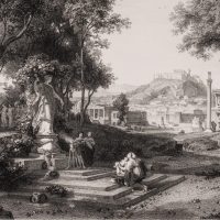 - Description: Beautiful city view, in the foreground sanctuary of Venus or Aphrodite.