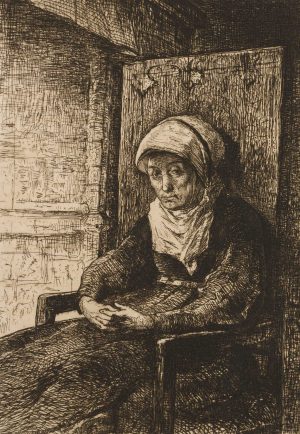 H. BOULENGER (*1837), Soetkin. Alte Frau am Fenster sitzend, um 1850, Rad.