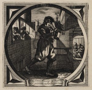 Nach VAN DE VENNE (*1589), Mann mit Hut und Laterne, 1632, Rad. Barock