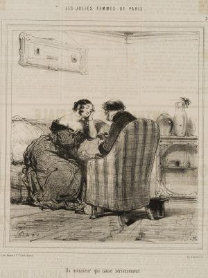 E. BEAUMONT (1821-1888), Karikatur. Dame – Herr im Monolog, Moderne Karikatur