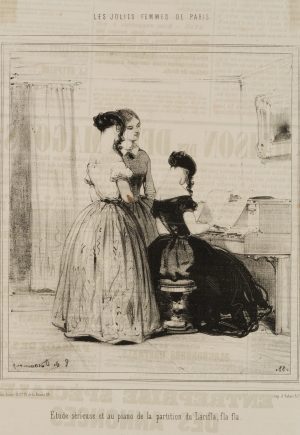 E. BEAUMONT (1821-1888), Karikatur. Klavierstudium drei Damen, Moderne