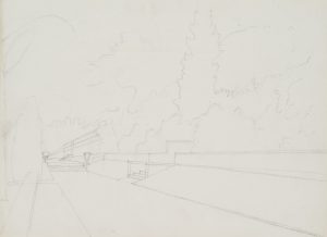 E. FÜRSTENAU (*1862), Skizze. Park von Schloss Sanssouci, um 1920, Bleistift