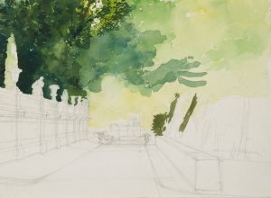 E. FÜRSTENAU (*1862), Architekturskizze. Parkanlage Schloss Sanssouci, um 1920,