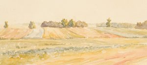 G. SAUER (20.Jhd), Agrarlandschaft unter tiefem Horizont, 1947, Romantik