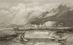 Unbekannt (19.Jhd), Blick v. Haus u. Bodegas über die Küste bis zum Hafen Santa