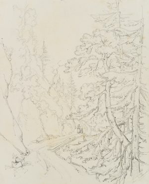 E. FÜRSTENAU (*1862), Rast am Gebirgssee, um 1920, Bleistift Romantik Landschaft