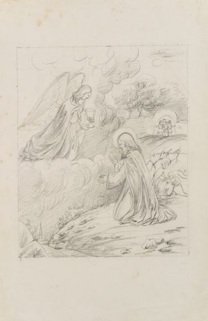 Unbekannt (19.Jhd), Magd mit Hühnern am Waldrand, Bleistift Romantik Berufsleben