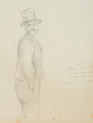 Unbekannt (19.Jhd), Mann mit Zylinder, Porträt, Ganzkörperdarstellung, Bleistift