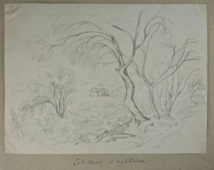 Unbekannt (19.Jhd), Landschaft mit Bäumen, Zeichnung, Bleistift Romantik