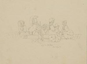 Unbekannt (19.Jhd), MEYER-BREMEN, Portraitskizze. Magd sitzend mit Krug.,
