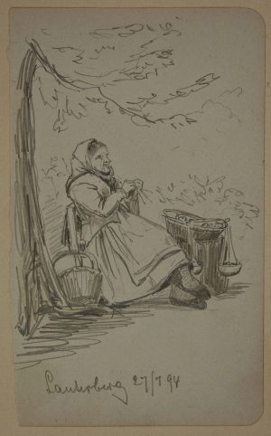 Unbekannt (20.Jhd), Fischer am Ufer eines Sees, um 1900, Bleistift Moderne