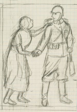 Unbekannt (20.Jhd), Soldat nimmt Abschied von seiner Mutter, Bleistift Moderne
