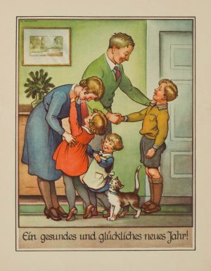 R. HEINRICH (20.Jhd), Neujahrsbrief, 1932, Gegenständlich Tiere