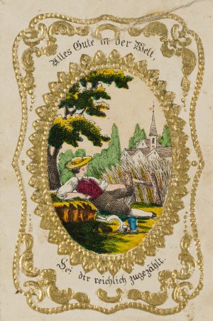 Unbekannt (18.Jhd), Glückwunschkarte, “Alles Gute in der Welt”, Figürlich