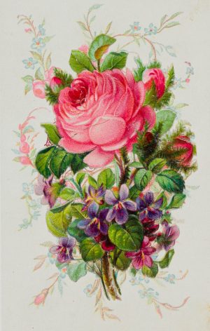 Unbekannt (19.Jhd), Geprägte Karte mit Blumenarangement und Rosenblüte, um 1900,