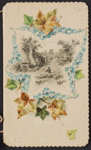 Unbekannt (19.Jhd), Geprägtes Glückwunschheft, 4-seitig, mit Faden gebunden, um