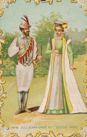 Unbekannt (19.Jhd), Glückwunschkarte mit festlich gekleidetem Paar auf dem Land,
