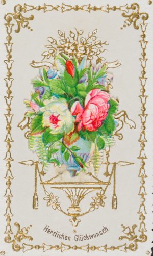 Unbekannt (19.Jhd), Glückwunschkarte mit Blumenstrauß reichender Hand, um 1900,