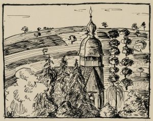 Monogramm WH (19.Jhd), Kapelle in österreichischer Landschaft, Feder Romantik